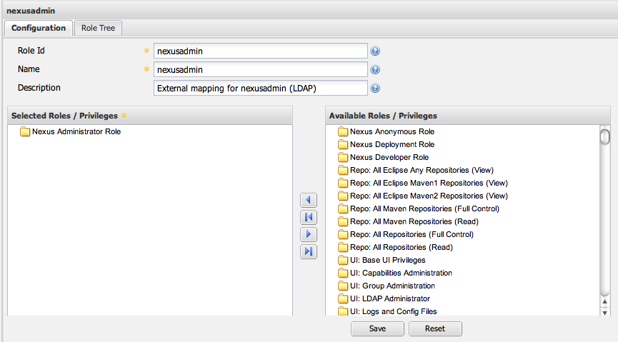Sonatype Nexus Maven Repository ManagerAdd an external role mapping. For example - here we map the LDAP group nexusadmin to the Nexus Administration Role