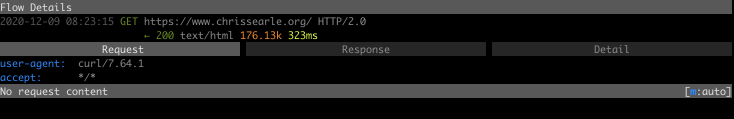 mitmproxy flow from curlUsing the arrow keys (up/down) to select a line - hitting enter drills down.