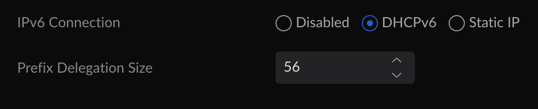 Primary WAN settingsNow - for each network that is to get IPv6 (for this example just the default network) - settings > networks > default